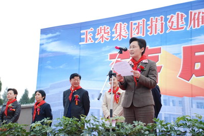 玉柴集团捐资助学的善举得到了社会各界的广泛赞誉。郭永红代表市委市政府向玉柴集团致敬,她说,希望工程功在当代利在千秋,作为内燃机行业的领军企业,玉柴集团积极回报社会,一直将慈善捐助作为履行社会责任的重要内容,大力支援灾区重建,充分体现了玉柴对资阳人民的深情厚爱、对资阳教育的关心和支持,也体现了企业强烈的社会责任感,衷心祝愿玉柴事业发达,蓬勃兴旺。她希望各级有关部门,大力弘扬玉柴集团捐资助学、主动承担社会责任的精神,把学校建成高水平、高标准、高质量的一流学校,建成资阳市基础教育中的一颗耀眼明星。