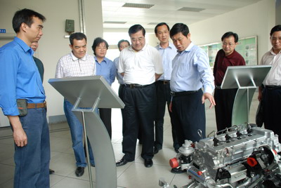 李天生为林国强介绍玉柴4W轿车柴油发动机