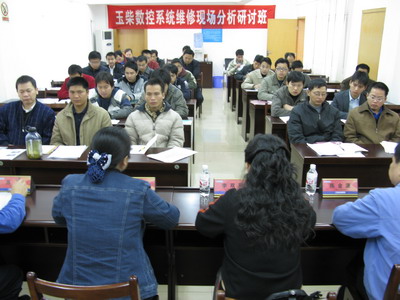 自2005年以来,广西机械工业职工教育协会每年组织区内技师进行各种交流活动,本次玉柴数控系统维修现场分析研讨班为期4天,主要由维修中心苏伟、甘文、张国凡、刘先黎等向学员介绍在玉柴设备上应用的各种数控系统,重点介绍西门子公司SINUMERIK840D/810D数控系统、HELLER加工中心的各种常见故障和案例分析,同时研讨班还将组织现场观摩、座谈讨论等活动,通过共同研讨、共同交流,不断提升全区数控维修技师的技能水平。