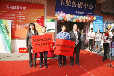 12月20日上午,玉柴房产公司售楼中心前音乐不断、街舞时起,人山人海,热闹非凡。玉柴房产公司在这大红大喜的氛围中,隆重举行嘉华小区“我的家园我设计”活动颁奖典礼暨抽奖仪式。动力公司卢志美、信息技术部林里铭分别获得奖金20000元的创新作品奖,32名玉柴员工每人获得奖金5000元的建议奖。