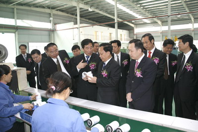 项目竣工投产仪式结束后,全体人员到汽车发动机过滤器生产线现场参观。