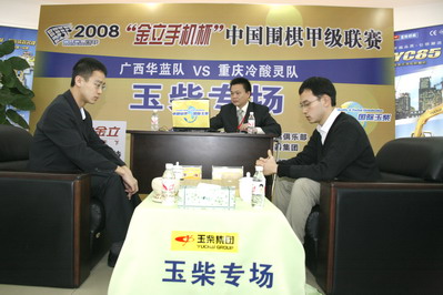 广西华蓝队与重庆冷酸灵队捉对厮杀地点设在动力大厦28楼观光厅,两队具体对阵形势如下:李康六段VS谢赫七段,牛雨田六段VS俞斌九段,张立四段VS王檄九段,廖行文三段VS古力九段(快棋)。经过激烈的较量,最终老牌劲旅重庆冷酸灵队以3比1取胜广西华蓝队。