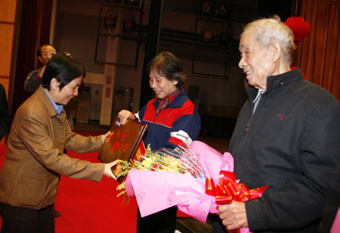 张嘉莎、饶英贤、郭德明为七对金婚老人颁发了金婚纪念牌匾和奖金。庆典活动之前,工会还请专业影楼为七对老人拍摄了金婚照。