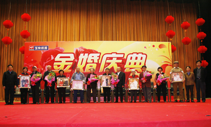 玉柴集团金婚庆典纪念活动每两年举行一届,这次是第二届。这项活动是落实晏平书记在集司第四次党代会党委工作报告中提到的“关注民生、保障民生、改善民生”要求的具体体现,也是弘扬中华民族尊老敬老传统的实际行动,对促进和谐社会具有十分重要的意义。张嘉莎代表玉柴集团对七对金婚老人表示了热烈的祝贺,同时也向全体离退休老同志表示亲切的问候,对老年人工作提出了希望和要求。张嘉莎说,要把尊老敬老工作当成义不容辞的义务和责任,通过围绕“老有所养,老有所为,老有所依,老有所乐”来开展工作,把公司的关怀和温暖落实好、体现好、送到位。