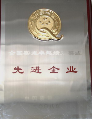 玉柴股份公司获得的“全国实施卓越绩效模式先进企业”奖牌
