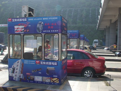印有玉柴专卖形象及企业综合业务宣传广告的收费亭