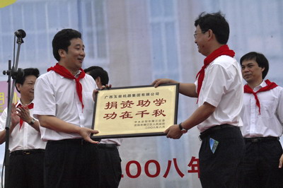 8月22日上午,由玉柴集团捐助150万元建设的四川资阳市雁江区松涛玉柴希望小学奠基。资阳市委书记翟占一、市长罗勤宏、玉柴集团董事长晏平等出席奠基仪式。