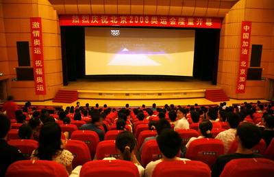玉柴职工在文化中心开心观看北京奥运会开幕式