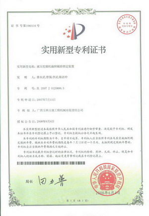 工程公司获得的实用新型专利证书 日前,玉柴工程公司申报的“d液压挖掘机偏转辅助锁定装置”实用新型专利已顺利通过中华人民共和国国家知识产权局的审查,被授予实用新型专利。 液压挖掘机偏转辅助锁定装置是由工程公司技术人员唐永武、曾强、李武、陈洁玲等研发的一种新装置,旨在解决带转向头液压挖掘机单一采用液压锁锁定在使用一定时间后产生的偏转角不足问题。该装置具有结构简单、设计合理、安装使用方便、安全可靠等优点,填补了挖掘机设计上的一项空白,发展前景广阔。 (姚健)