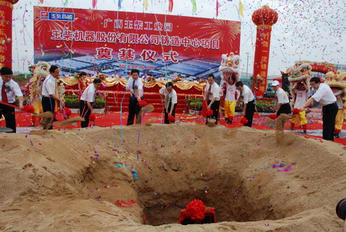 玉林市委书记文明,市长金湘军,市政协主席吕坚,市委副书记余兴祥,市人大常委会副主任刘胜福,市委常委、市委秘书长黄海昆,市政协副主席、玉柴董事长晏平等领导出席了玉柴铸造中心项目奠基仪式,并为项目剪彩、为基石培土。市委常务副市长刘子福主持仪式。