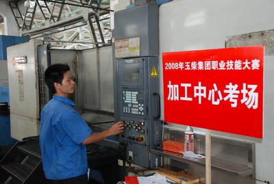 在比赛现场,集司工会副主席、股司工会主席饶英贤向记者介绍了本年度技能大赛的情况:玉柴集团2008年职业技能大赛共设11个比赛工种,是历年来工种最多、规模最大的一次,大赛从5月份开始,一直到11月才结束。集团举行这样的大赛,对职工个人来说,提供了一个很好的展示技能的平台,对公司来说,也是一次对职工整体技能水平的检验。在这次数控3个工种的比赛中获得前几名的选手将直接参加7月中旬举行的广西区职业技能大赛。