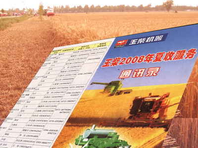 在客户服务中心编印的“玉柴2008年夏收服务通讯录” 上,从总部到办事处、服务站的服务热线,到维修负责人、流动小分队队长的手机号码一一体现,通过这份通讯录,跨区作业的收割机手在麦田里出现机器故障时,可以第一时间和相关的服务人员取得联系,从而缩短了维修过程,为农民抢收争取更多的时间。