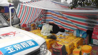 5月17日,是地震后的第5天,虽然已经超过72小时的营救“黄金时间”,但整个汉旺镇仍然有解放军战士、武警官兵、消防战士、救援人员的身影忙碌着。我们也投入这支队伍中,进行紧张的营救工作。晚上,抗震救灾小分队驻点休息,一部分人员睡车上,一部分人员睡在配件上面。