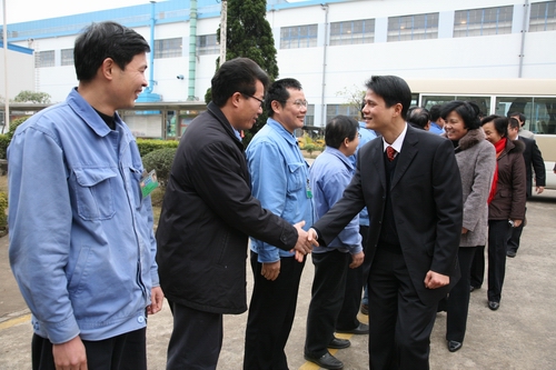 接着李天生等两司高管领导到二发厂、一发厂、冷工厂、铸造厂、工程研究院、配件公司、动力公司、高润公司、工程公司、物流公司拜年,每到一处,李天生总经理都做简短的新年春节祝辞,为各单位领导、员工加油鼓劲,祝福他们新的一年工作顺利,有更好的收成,出色地完成2008年度经营目标。