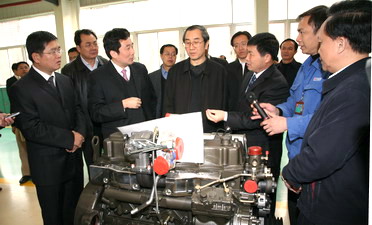 在玉柴,马飚主席深入重机加工车间、重机装试车间进行了调研,了解玉柴发动机的生产经营情况。晏平董事长汇报说,2007年玉柴实现了健康高速的发展,经营业绩创下新高,年销售收入超过了180亿元,发动机产销量突破了50万台,连续七年稳居国内同行首位。马飚主席对玉柴2007年的业绩表示非常满意,对玉柴新年的生产经营走势感到非常高兴。马主席说,玉柴是广西工业经济的重要支柱,作为大型企业集团,玉柴主业突出、实力雄厚、竞争力强,我们要大力做好发动机这优势产业,推动地方经济的大发展。