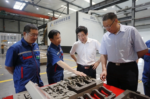 钱恒荣一行首先来到玉柴快速制造基地,晏平向钱恒荣介绍玉柴快速制造的发展历程、先进设备、技术成果。经过多年探索,玉柴快速制造基地已成为目前国内最大、装备最多、功能最全、技术最优、人才最强、国内最先进的柴油机快制基地。