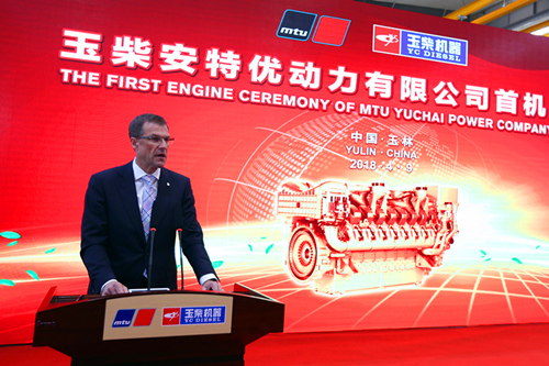 玉柴股份董事长晏平指出,S4000这款起步就与世界同步的产品,填补了国内高端高速大功率柴油机1400kW以上功率段的空白,拓宽了玉柴船舶及发电动力的功率范围,是全球内燃机制造商强强合作的杰出作品。玉柴安特优正式投产,进一步完善了玉柴与德国MTU公司的战略布局,将开拓玉柴团队的思维和视野,革新管理理念,丰富文化内涵,推动玉柴团队以更丰富的经验、更强的话语权和实力谋划中国与海外市场,以全新的姿态创造属于全体合作伙伴的胜利和构建伟大版图。