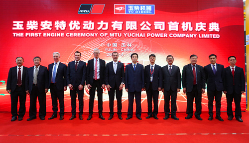 MTU母公司罗尔斯-罗伊斯动力系统有限公司总裁Andreas Schell共同为该发动机揭幕。首台发动机的诞生标志着玉柴安特优已经初步具备批量生产与供货能力,将以高端动力产品参与国内及国际市场竞争。
