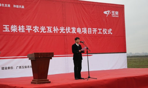 古堂生在全面开工仪式中致辞,强调了玉柴桂平农光互补光伏发电项目建设对企业转型发展的深远影响。他说,项目的顺利实施,是玉柴深入践行“二次创业”、促进产业转型升级的重大举措,对优化集团产业布局、做强做大集团新能源产业板块、促进提质增效等具有重大意义。