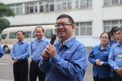上班伊始,古堂生率周孙海、关敏、汪虹、郭德明、李天生、李呈杰、申光等集团公司领导在集团公司大门口迎接职工上班,随后相继到玉柴重工、玉柴物流、华原公司、玉柴动力,向职工拜年。