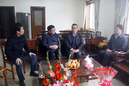 2月9日,玉林市委书记王凯到玉柴英华小区慰问科技人员覃文。集团董事局主席晏平、副总裁关敏陪同慰问。