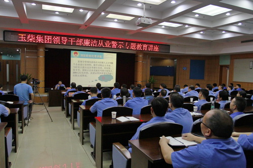 张坚局长向玉柴干部宣讲廉洁从业警示教育讲座。