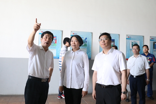 严植婵一行参观了玉柴船电动力事业部生产车间、创新成果展示区和试验中心,听取了玉柴党建文化建设、船电产品与市场表现、国六研发与配套、新能源发展战略等情况。