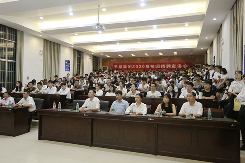 根据公司国际化战略发展需要,为公司新能源、国六、海外等战役储备优秀人才,玉柴启动了2020届玉柴集团校园招聘。10月9日晚,玉柴校园招聘宣讲会在广西大学举行,打响了玉柴2020届校园招聘“第一炮”。