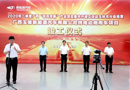 6月28日,2020年二季度广西“双百双新”产业项目集中开竣工仪式举行,隶属“双百双新”产业重点项目的玉柴纯电动商用车项目当天迎来竣工投产,开启了玉柴整车产业发展的新纪元。