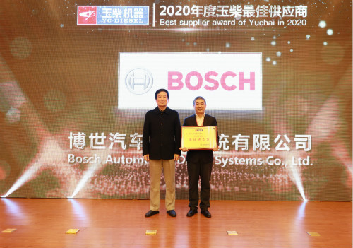 博世汽车柴油系统有限公司是玉柴核心战略供应商之一,获得玉柴“最佳供应商”奖。博世动力总成解决方案事业部中国区总裁、玉柴供应商联合会会长王伟良表示,玉柴是有情有义有温度的企业,一直以来坚持以公平、公正、公开的原则与供应商友好合作,共赢发展。博世非常尊重和珍惜玉柴这个合作伙伴,将一如既往地全力支持玉柴打赢国六争夺战,实现打造世界一流企业的发展目标。