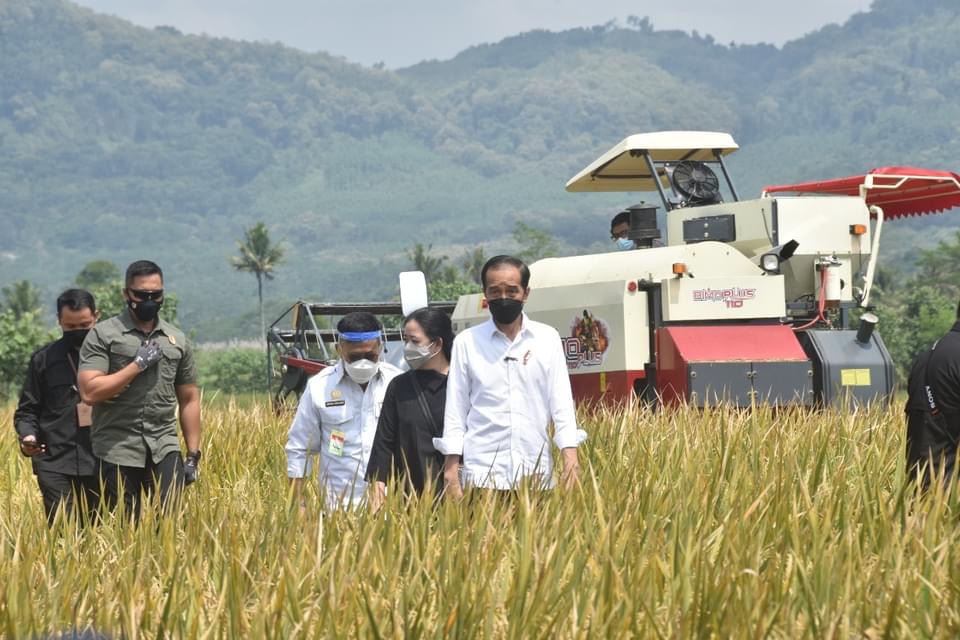 印尼总统佐科为配套玉柴发动机的水稻收割机点赞。