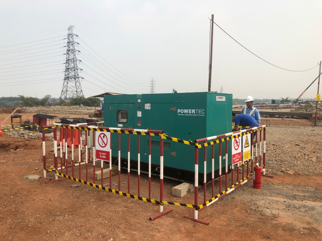配套玉柴的发电机组在雅万高铁施工现场。