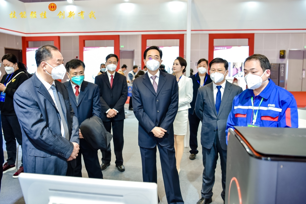 自治区人大常委会副主任、党组副书记,自治区总工会主席张晓钦观看玉柴职工创新成果,与玉柴工匠亲切交流,并对玉柴创新成果给予高度肯定。