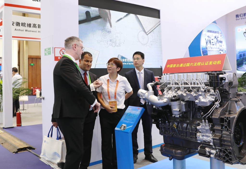 此次展会,玉柴展出YCK08柴油机、YCK05氢燃料发动机及E-CVT混合动力总成三款产品。YCK08发动机是首台通过国六法规认证的重型柴油发动机,它具有轻量化、低油耗、适配性强等优势特点;YCK05是中国首台商用车燃氢发动机,采用了高压多点进气道喷射技术、高效低惯量涡轮增压技术、高效稀薄燃烧技术等多项先进技术,攻克了氢内燃机易回火、易爆震等技术难题,在重型车辆、轨道交通及发电市场等优势显著;E-CVT混合动力总成动力系统是全球首创的高节油率、高舒适性、高适配性的新能源动力,创造性解决了混动产品的油耗难题。