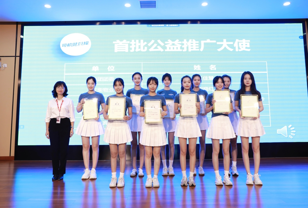 为更好地推广司机健康操,玉柴在内部招募了首批17名公益推广大使,他们将用活力、魅力传递司机健康操的正能量,打造玉柴公益品牌力。会上,玉柴集团党委副书记关敏为司机健康操公益推广大使颁发聘书。