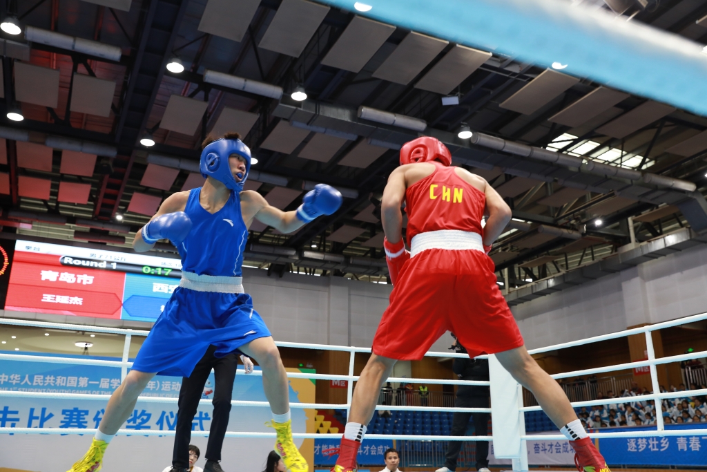 当天下午举行的学青会“玉柴杯”拳击赛决赛共上演了5个级别的比赛,每一场都是力量、速度和耐力的较量,非常精彩。