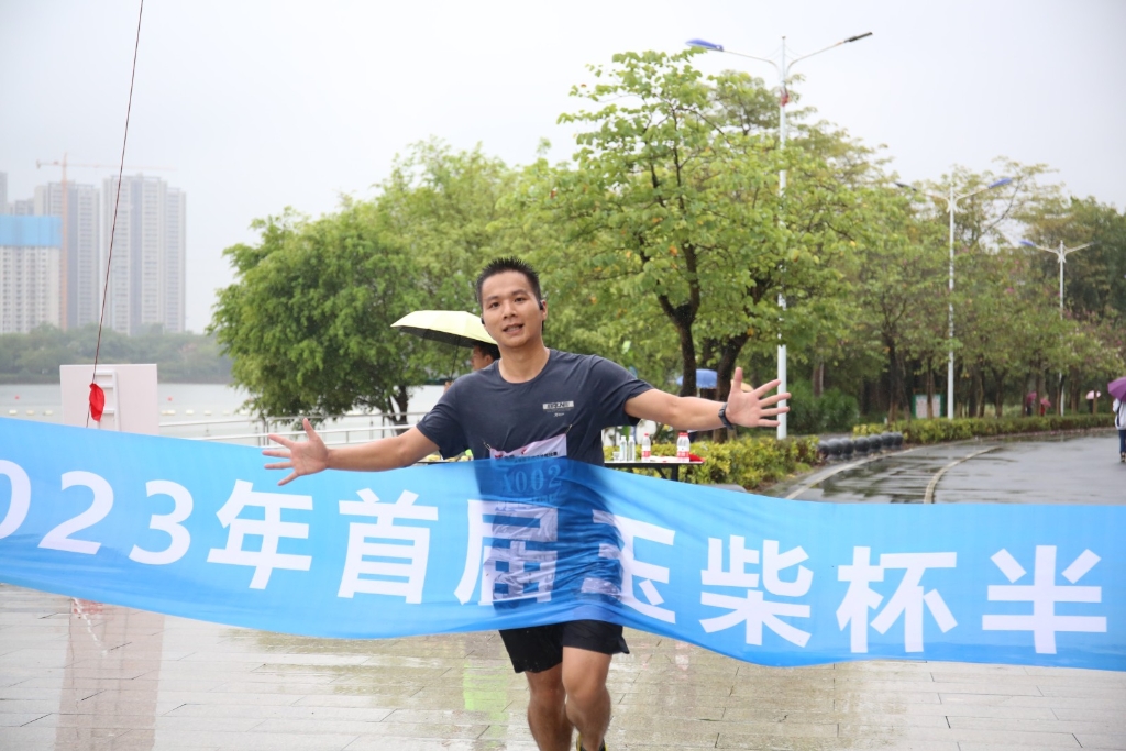 当宣布开赛的声音响起,参赛选手迈着稳健的步伐向前冲,你追我赶,上演着一场精彩的角逐战。尽管天空下着小雨,也挡不住参赛选手的无限热情。经过2个多小时的激烈角逐,来自玉柴股份制造事业部的参赛选手赵海林以1小时36分54秒获得半程马拉松男子组第一名,来自玉林宾馆的参赛选手阚立超以1小时54分18秒获得半程马拉松女子组第一名。