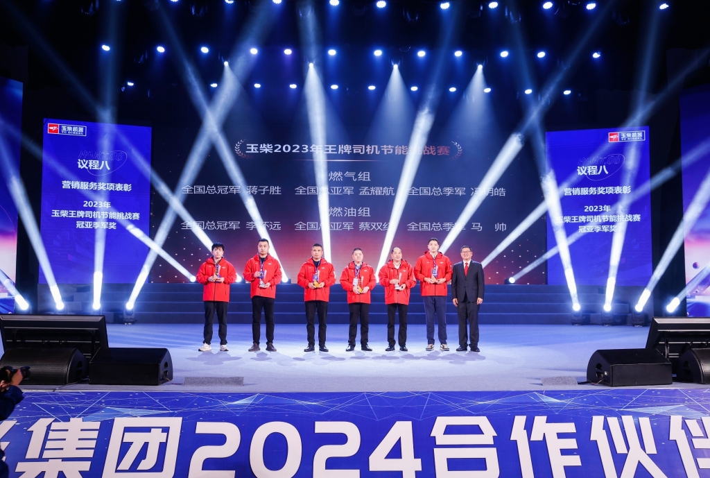 期间,玉柴合作伙伴代表上台发言,畅谈与玉柴的合作历程,表达未来的合作信心和想法。会上还对玉柴股份2023年营销服务业绩突出的团队及个人进行隆重表彰。