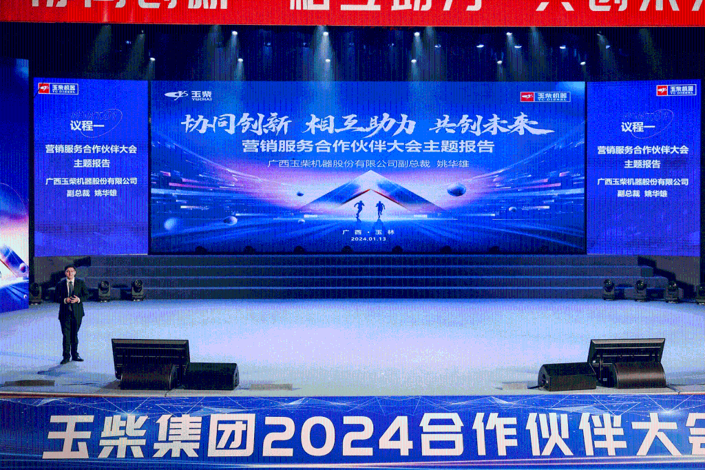 1月13日,玉柴机器2024年营销服务合作伙伴大会在广西玉林隆重举行,会议全面回顾玉柴2023年的奋斗历程和经营情况,介绍玉柴1235战略目标和实施路径,提出2024年的营销工作思路,动员和凝聚各方力量,携手助力客户成功,共创美好未来。玉柴股份董事长李汉阳出席大会并致辞。