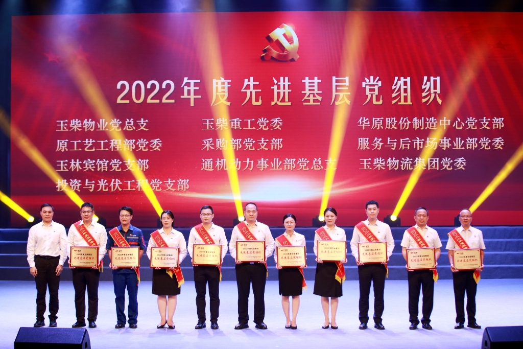 晚会期间,玉柴集团党委表彰了2022年度党内先进集体和个人,李汉阳、申光、吴其伟分别为获得“玉柴集团2022年度先进基层党组织”“玉柴集团2022年度优秀党务工作者”的党内先进集体和个人颁奖。