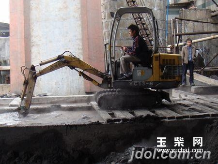 玉柴YC13-8小挖机清污作业