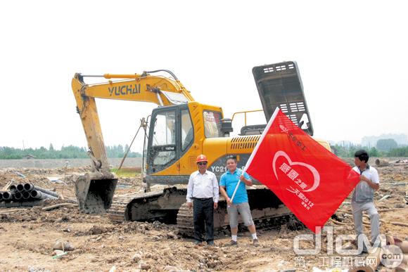 在经过对国内外多个品牌挖掘机进行对比之后,2005年5月,孟志祥拿出自己全部积蓄,加上贷款,购买了第1台挖掘机——玉柴在YC135-8型挖掘机。由此,孟志祥进入了挖掘机施工行业。“YC135-8回转快,挖掘作业时大小臂提升速度快、有力,复合动作配合的很协调”,孟志祥的第一台挖掘机在短时间给他带来了可观的效益。