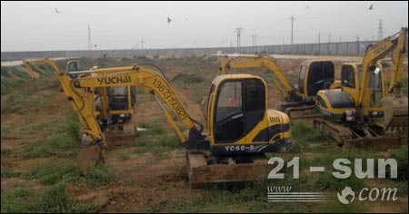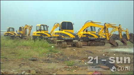6台玉柴重工YC60-8完工后,整齐的停在一起