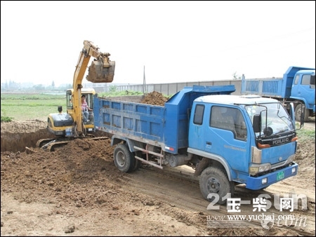 5月27日,玉柴重工常州服务工程师一行驱车拜访常州嘉哲镇用户戴文忠老板,当工程师们见到戴老板时,他的YC60-8还正处于忙忙碌碌的作业中。“你们不用这么兴师动众,我的小挖没出问题,你们不用来这么多人,谢谢你们的关心啦!”当戴老板见到八九个人的服务工程师队伍时,一边上前迎接,一边笑着喊着。据戴老板介绍,嘉哲当地现在发展养蟹业,这台正在作业的YC60-8是自己的第二台玉柴挖机,出活率高、动力强、油耗低,得到了很多工程老板的信任,自己才有机会包揽了很多挖蟹塘类的工程。“2011年11月份,戴老板还介绍了一个同乡也买了一台YC60机,他现在工程量也挺多。”随行的常州办事处主任冯乐一边同戴老板聊天,一边和正保养机器的服务人员说着。