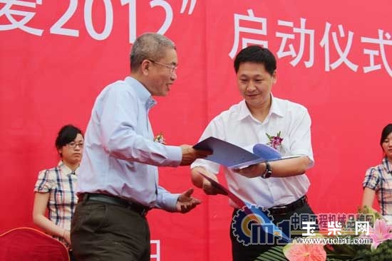 2012年5月25日,玉柴重工玉柴发动机再制造合作项目、玉柴发动机服务站签约暨“感恩之旅——关爱2012”启动仪式在江苏常州举行。玉柴重工有限公司总经理张士勇、玉柴再制造总经理杨士伟、玉柴机器股份有限公司副总经理王利民、玉柴“感恩之旅——关爱2012”客户服务队、玉柴员工及玉柴专卖配套件合作企业代表数百人参加启动仪式。
