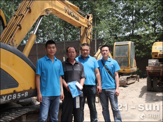 “看这台YC85-8用了8000多小时了,那边的YC60-7都快16000小时了,都没大修过,挖斗、大小臂等各主要部件也从来没换过,即便有时候有点小毛病也能提前检查出来自己解决掉,很省心啊!”