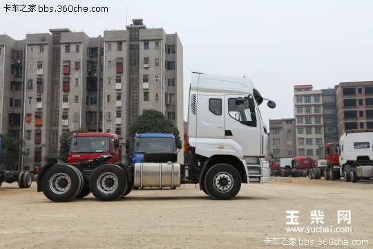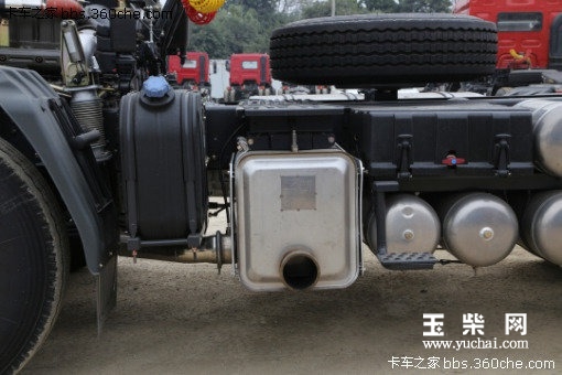 6x4车型采用改了457驱动桥,后桥速比为4.11(可选3.7、4.44)。