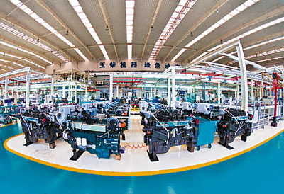 今年4月23日,人们在第十一届北京国际车展上看到了玉柴精心研发的YC6K重型柴油机,这款13L排量的机型采用了欧洲目前流行的新技术平台,最大功率达到520马力,排放达到欧5标准,并可升级至欧6,是玉柴全力打造精品重机的亮剑之作。目前,这种机型已在北京公交客车应用。5月,玉柴的YC6L-50欧5柴油发动机荣获由交通运输部颁发的「中国道路运输杯」最佳零部件奖,是行业唯一获得此殊荣的企业。7月9日,天津滨海新区公交公司举行了开线暨绿色环保公交车首发仪式,投入运营的120部车辆,全部采用玉柴欧4发动机,是天津首批达到欧4尾气排放标准的运营车辆。
