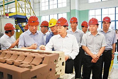 全国人大常委会副委员长司马义.铁力瓦尔地(前排右四)对玉柴的科技创新大加称赞