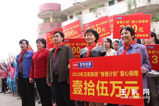 救援。2月,玉柴集团以历史上最快的产出纪录赶制了16台发电机组运往受雪灾地区,同时将11万元的捐款和一大批衣物发往雪灾地区。汶川大地震后,玉柴集团积极捐款捐物,总额超过1500万元。当年8月,由玉柴集团捐助150万元建设的四川资阳市雁江区松涛玉柴希望小学奠基;2009年3月,松涛玉柴希望小学竣工开学。随着赈灾援建的深入,玉柴集团再次向资阳市捐赠2台挖掘机和6台发电机组,物资价值148万元。